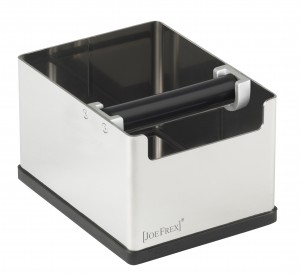 Dieser Abschlagbehälter aus Edelstahl ist hervorragend geräuschgedämpft durch den silikonummantelten Metallstab und die extrem rutschfeste Gummiauflage.