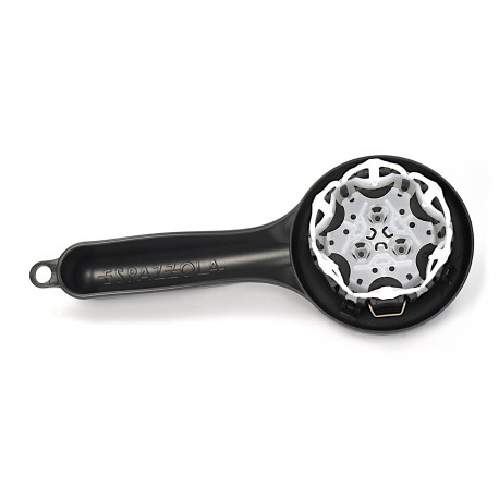 Die Espazzola-2-58 hat zwei feste Nocken - und passt deshalb nicht in alle Brühgruppen. Bei der neuen Espazzola-2+3-58 entscheiden Sie selbst, wieviele Nocken am Becher montiert sind: Klammern aus Edelstahldraht werden in speziell dafür vorgesehene Plätze in der Becherwand eingeklipst. Sie passen die Espazzola so einfach an die Form Ihres Siebträgers an.