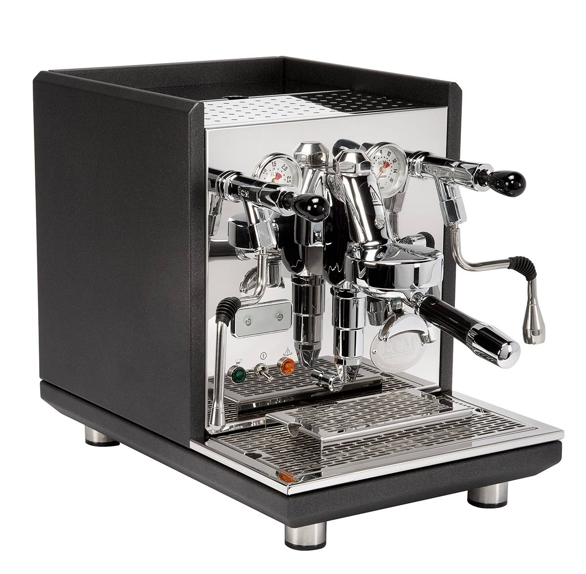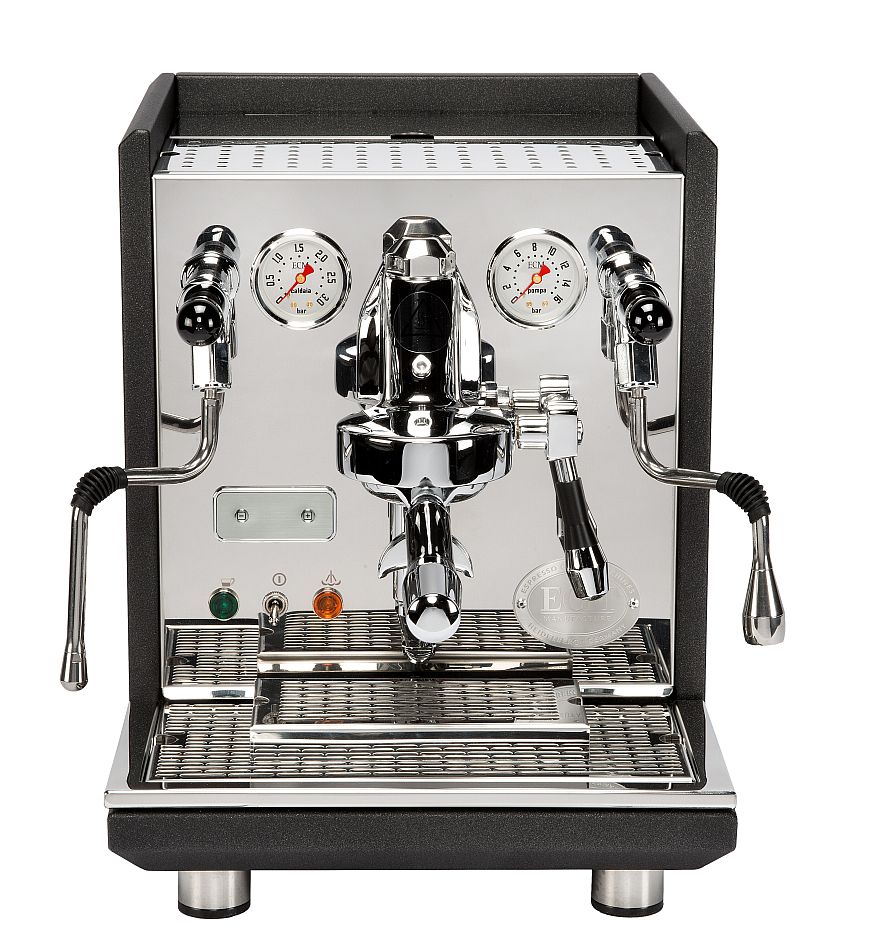 Die neue Dualboilermaschine aus dem Hause ECM macht mit neuem Design auf sich aufmerksam: Das sichtbar abgesetzte, pulverbeschichtete Chassis in Anthrazit ist in Kombination mit dem klassisch polierten Edelstahlgehäuse ein echter Hingucker.